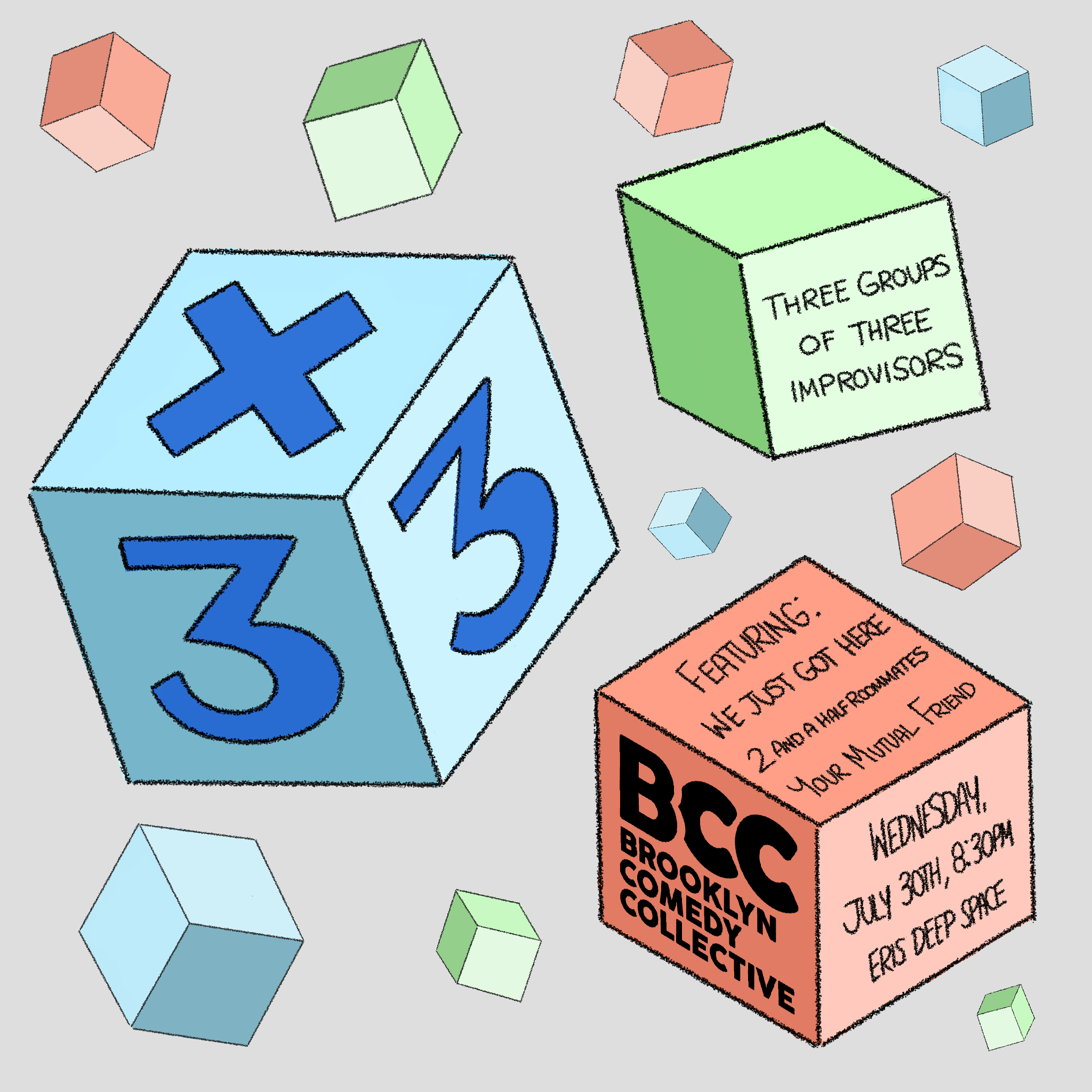 Three improv groups consisting of three people each all show off their own personal brand of improv. At the end of the show everyone will combine their powers and do one epic set.