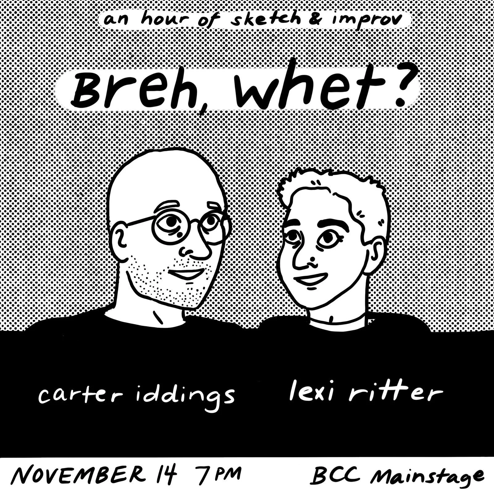 Carter Lee Iddings and Lexi Ritter bring you an hour of sketch and improv that begs the question, Breh, Whet?
