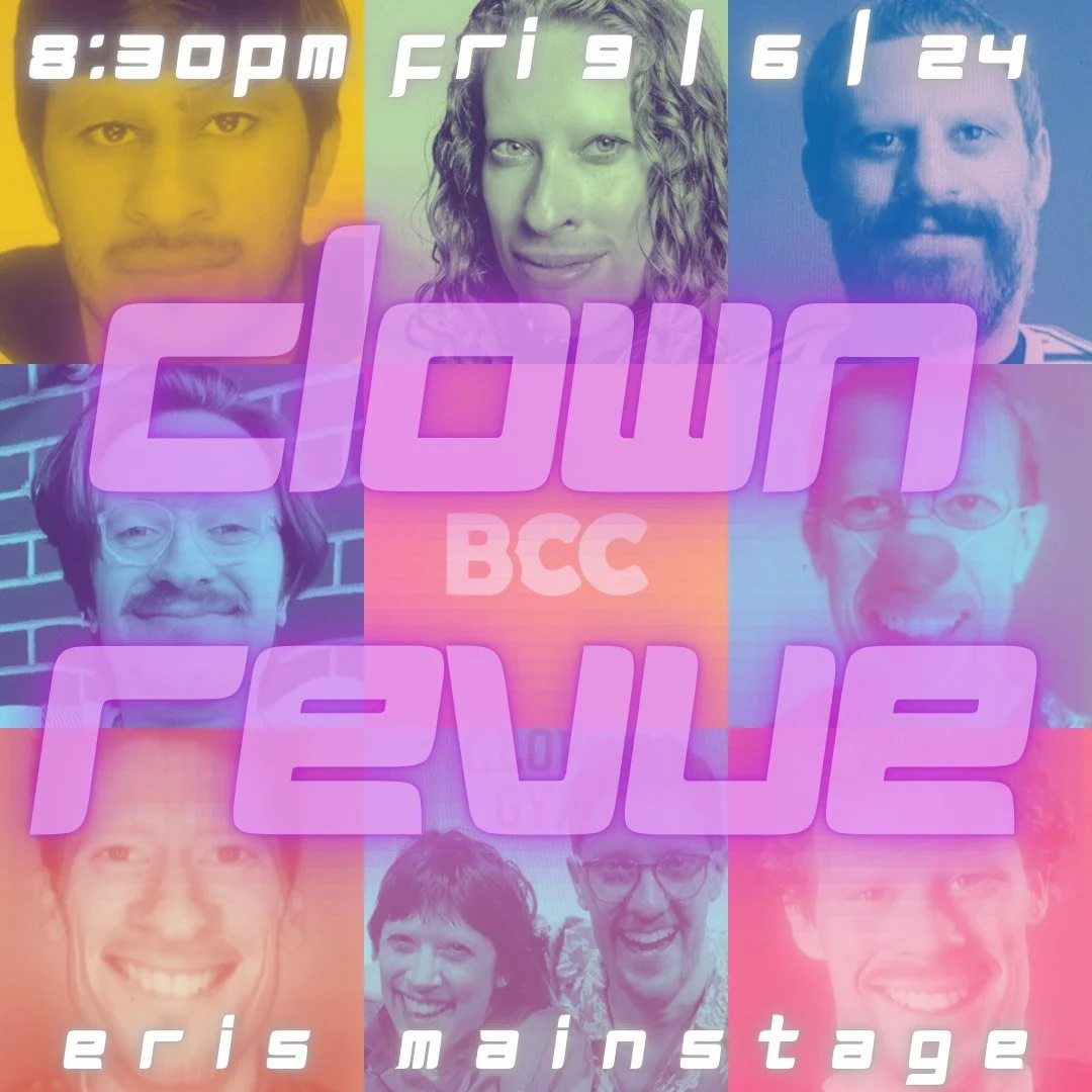 What do you do when the world feels crazy? Turn to clown! The Clown Revue is a monthly showcase that will feature longer pieces by seasoned New York clowns (and beloved BCC clown teachers) Chris Manley, Jeff Seal, Tallie Medel, Riley Soloner and Julian Hernandez, alongside bits from BCC’s highly talented clown students. And, of course, special appearances by guest clowns from time to time. Each Clown Revue will end with a student jam — a teacher-led performance exercise.
