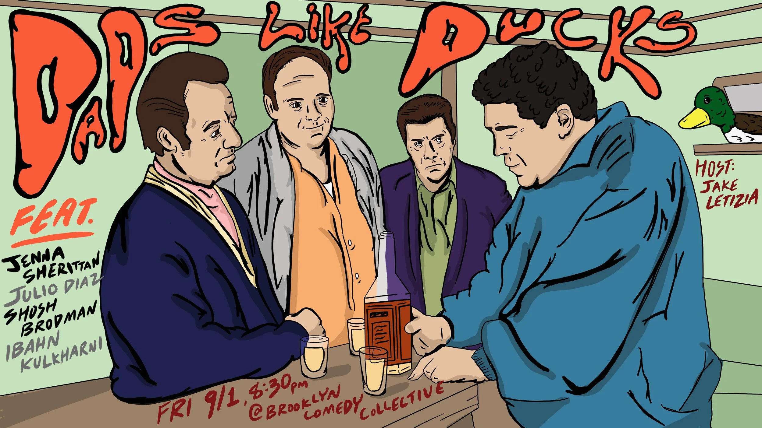Come see Jake Letizia host some of the funniest comedians in New York! This show will make you smile, chuckle, laugh, and will prove to you that just like Tony Soprano, Dads Like Ducks.