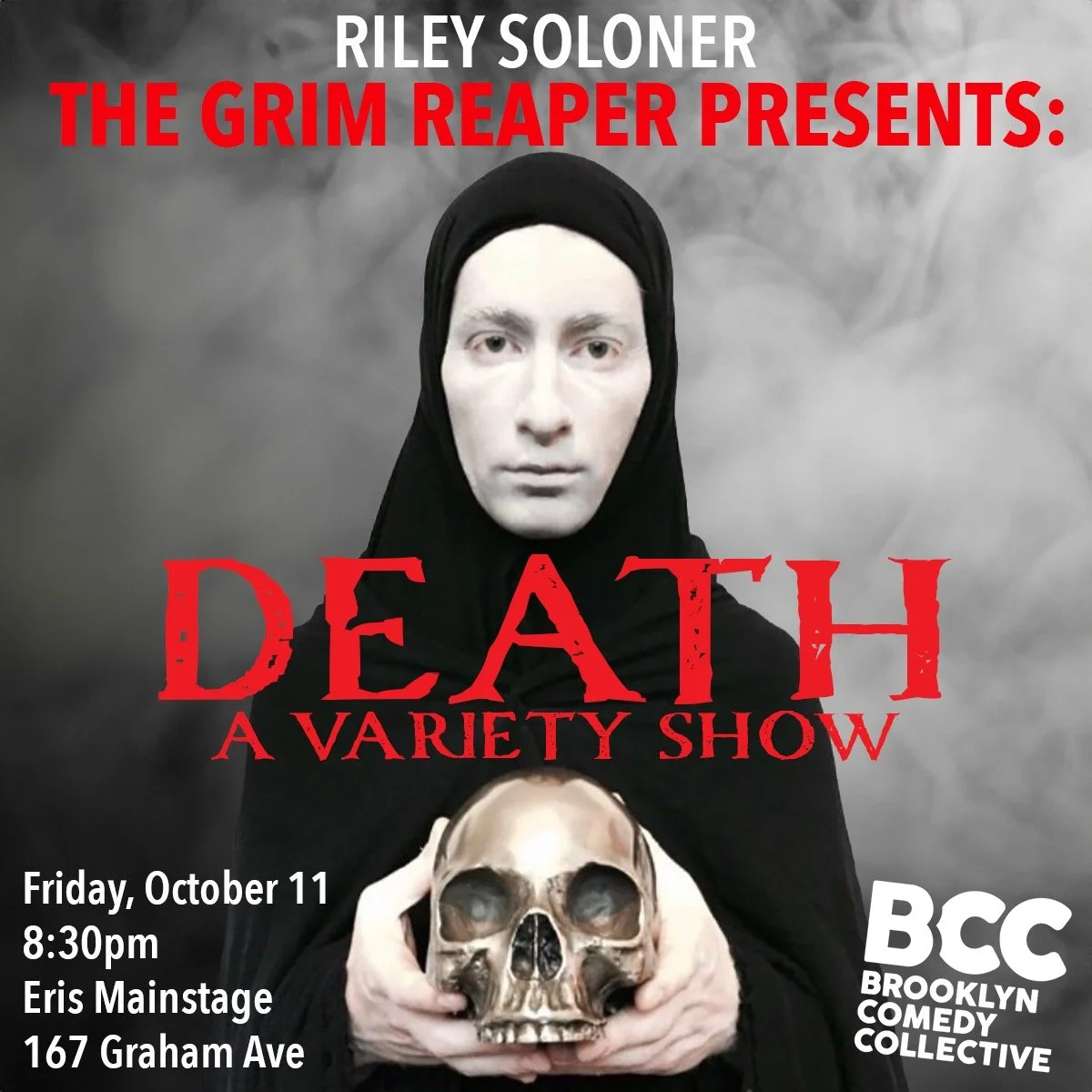 Death is coming to Bushwick! For one night only, The Grim Reaper (death personified, the angel of death) visits the mortal realm to host a variety show with comedy, music and a friendly reminder of your inevitable end.