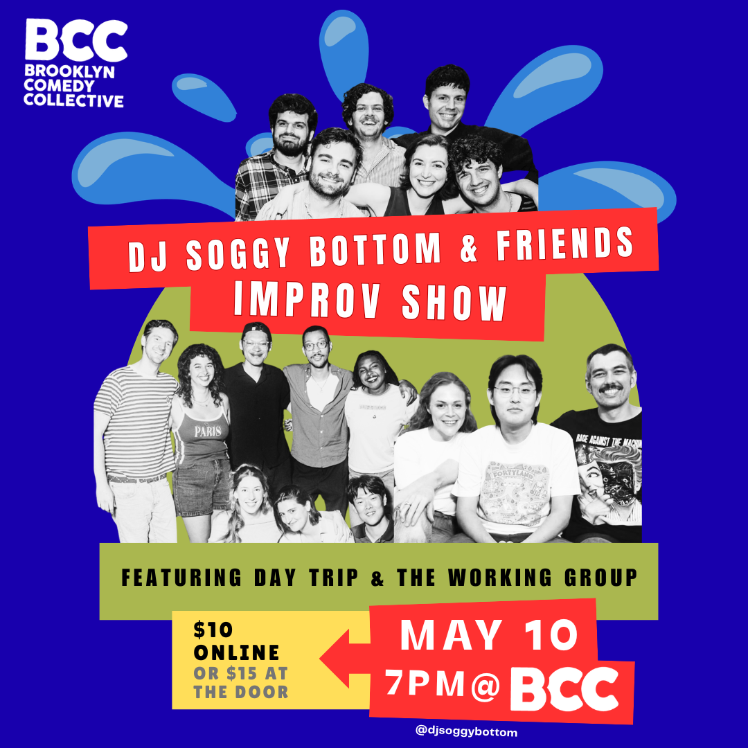 DJ Soggy Bottom & Friends is a slippery wet long form improv show. Featuring sets from, Day Trip, The Working Group and DJ Soggy Bottom. Come get hog wild with the goofiest people in town.