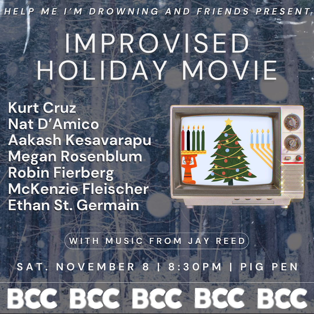 Leave the big city behind, and travel to a winter wonderland inside the BCC Pig Pen for an evening of magic, laughter, and holiday hilarity. For one night only, this cast of prancing reindeer will perform an hour-long improvised holiday movie based on your suggestion – full of sappy lines, snowball fights, and non-denominational celebrations. Please bring your own snow.