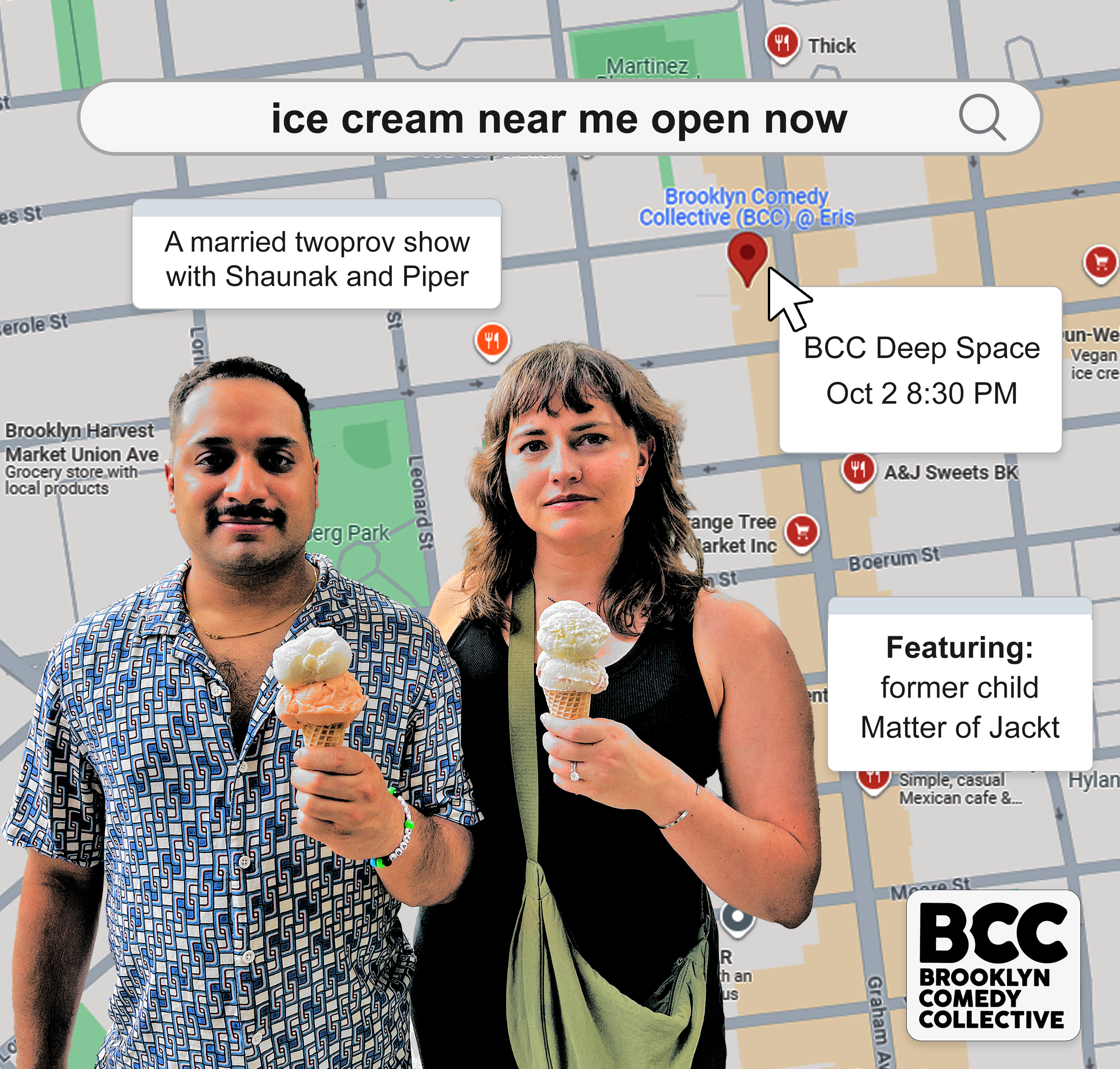 Shaunak and Piper are partners in comedy and in real life, and they're here to do two-person longform improv for you! Featuring incredible talented duos, former child and Matter of Jackt.