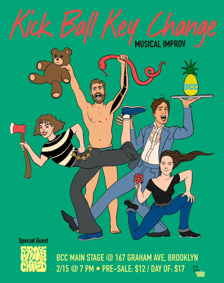 Two power house Musical Improv teams (SKINK & Former Child), w Musical Director (Max Feldman) take Your audience suggestions to create an evening of Improvised Musical Magic.