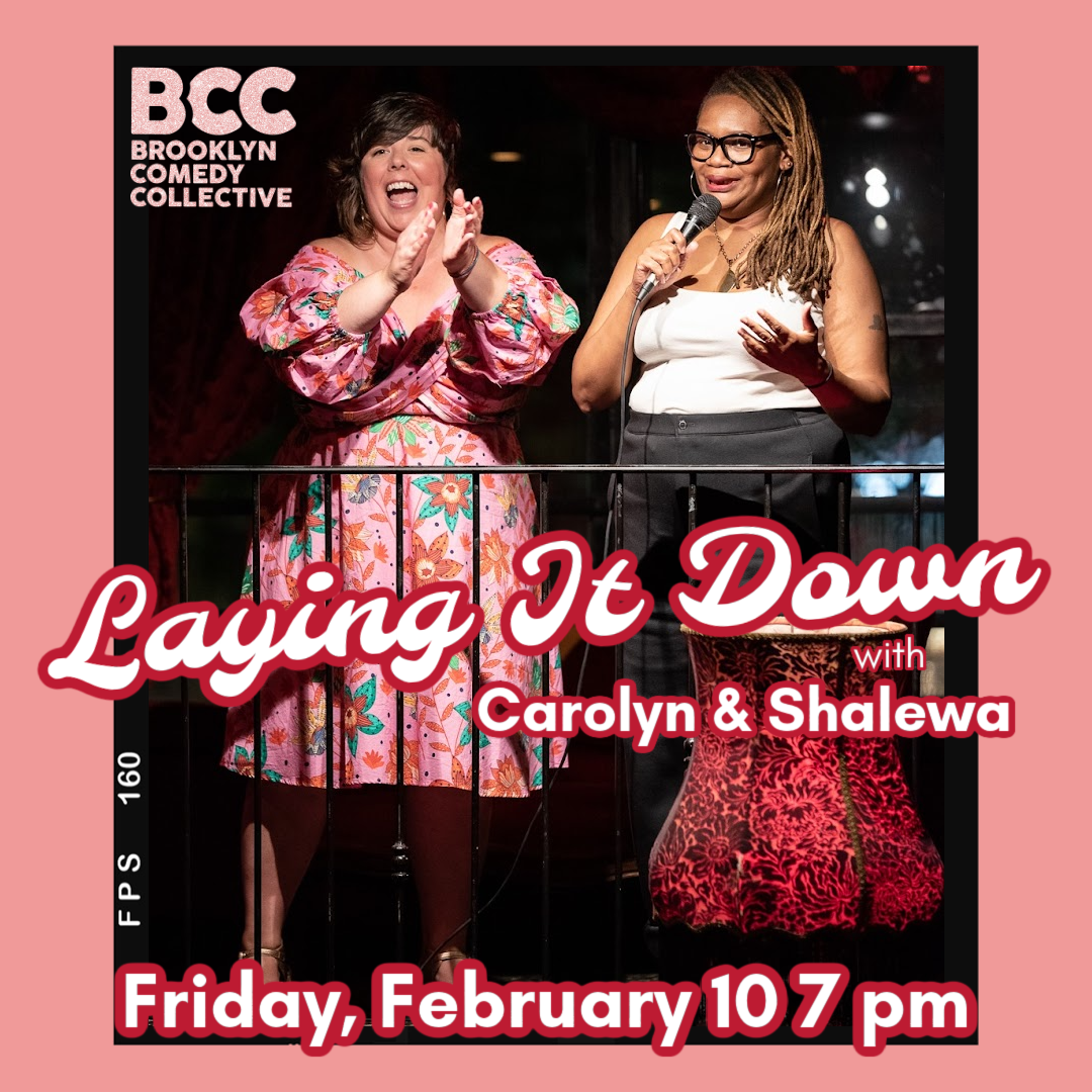 Seasoned New York comedians and beloved professors, Carolyn Castiglia & Shalewa Sharpe, host Laying It Down-- a monthly stand-up showcase!