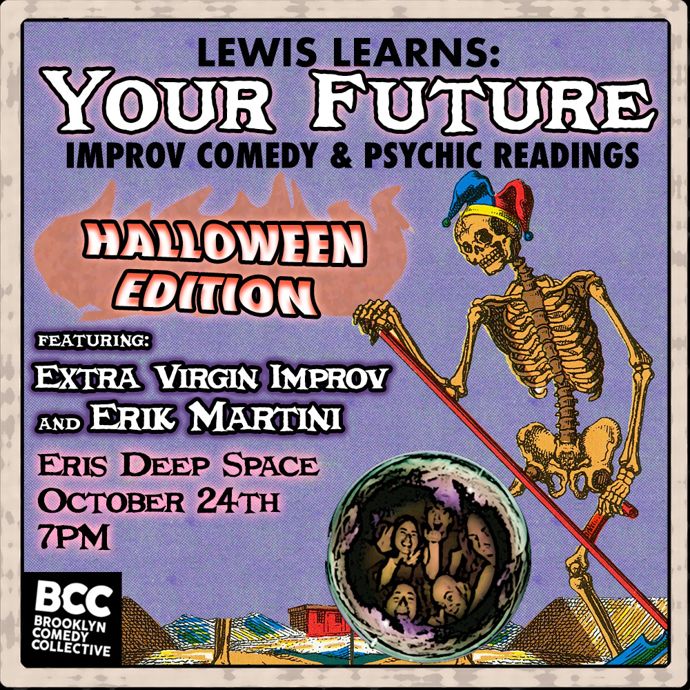This spooky season, Lewis, the most mysterious improv team in the world, is bringing back their favorite LIVE psychic to read the haunted future of one lucky audience member. Then, in a spine-tingling twist, they will improvise scenes based off of the reading. That’s right: it's tarot cards, it's Brooklyn, it's improv, and oh yeah, IT’S THE WEEK BEFORE HALLOWEEN — it's the moment.