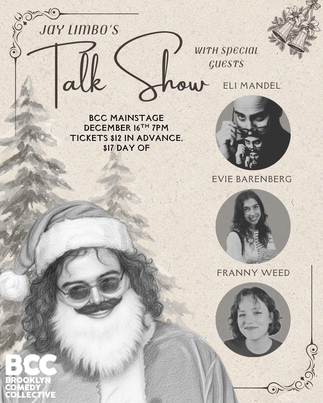 All ticket sales are final - no refunds. If you must miss your show, email us at info@brooklyncc.com with at least 24 hours notice and we can transfer your tickets to any upcoming show at the BCC. Answers to most other questions can be found here.