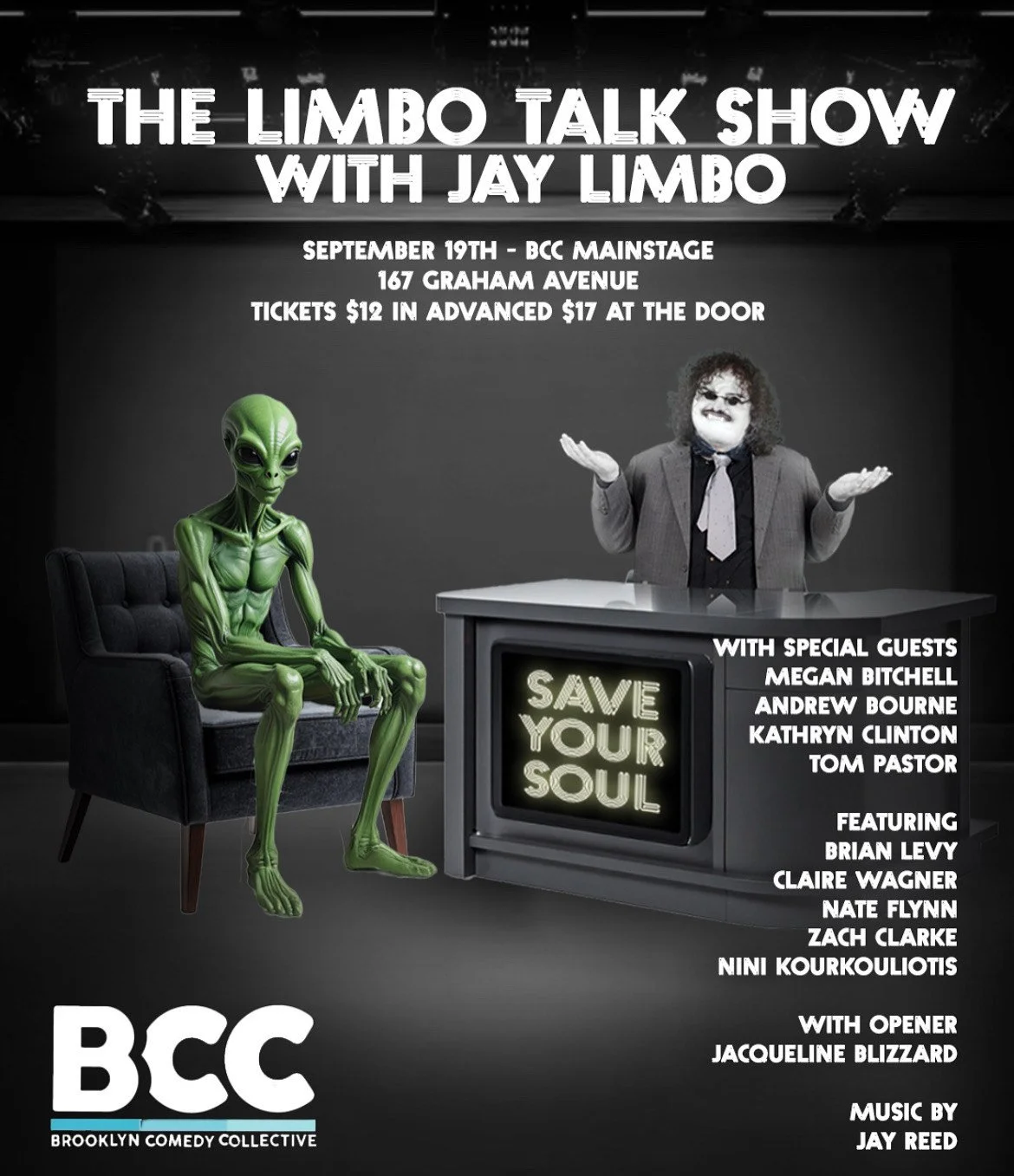 Come save your soul at The Limbo Talk Show, the only talk show set in purgatory! Join host Jay Limbo (Vincent Biello) and his team of freaks as he gets four very special, very stupid guests to bare their souls so you can judge if they are worthy of salvation! Yes that’s right. At The Limbo Talk Show the audience votes to determine whether these silly souls will be dammed to the realm of Lesbian Satan or welcomed with open arms into the kingdom of The Gator Pope. Also there will be gnomes there this time! Want to find out what that means? We do too! Buy a ticket and come find out!