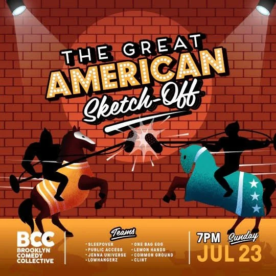 The best NYC sketch teams will battle head to head in the debut duel: THE GREAT AMERICAN SKETCH-OFF. Each team will prepare their three hottest sketches and compete tournament style for the championship title, and the audience will decide the fate of our sketch warriors. Hearts will break. Babies will cry. Lives will be lost. It’s a brand new show you won’t want to miss! Hosted by the Sleepover Sketch Sisters, Winnie Stack and Christine Covode.