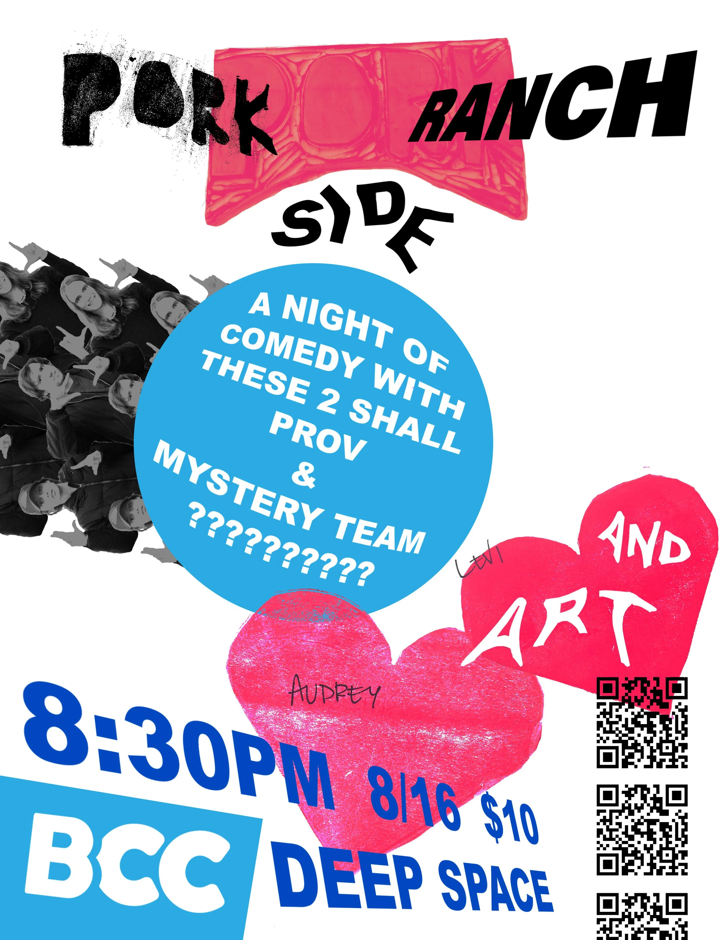 Oink oink! Get your bathing suits on, cause Pork Side Ranch invites you to take a deep dive into some funny muddy nonsense with some of their silliest friends. It’s improv, it’s music, it’s painting - all in the mud pit (deep space) See you piggies there!