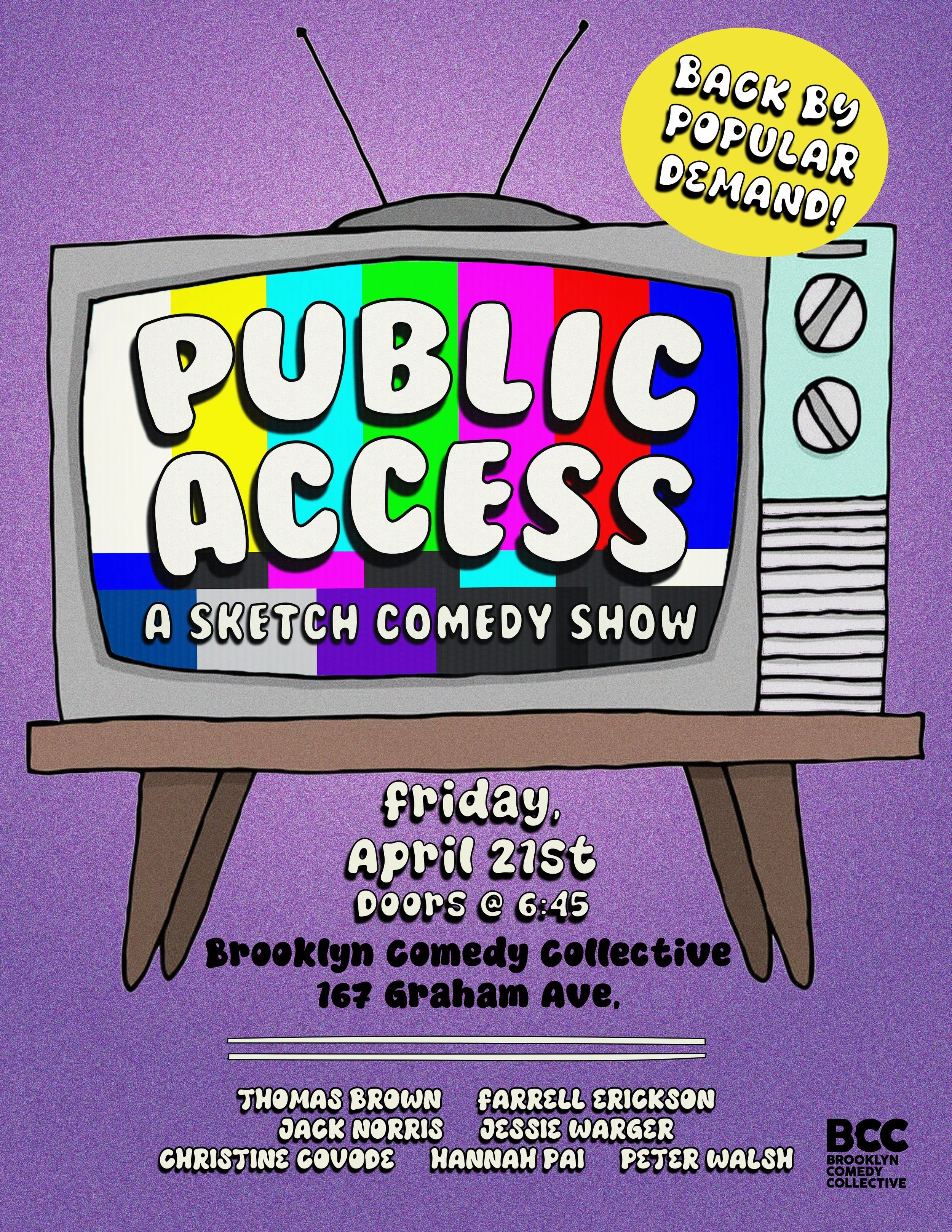 Kick back, grab your remote, and tune in to Public Access, an hour of sketch comedy programming pulled straight from the airwaves.