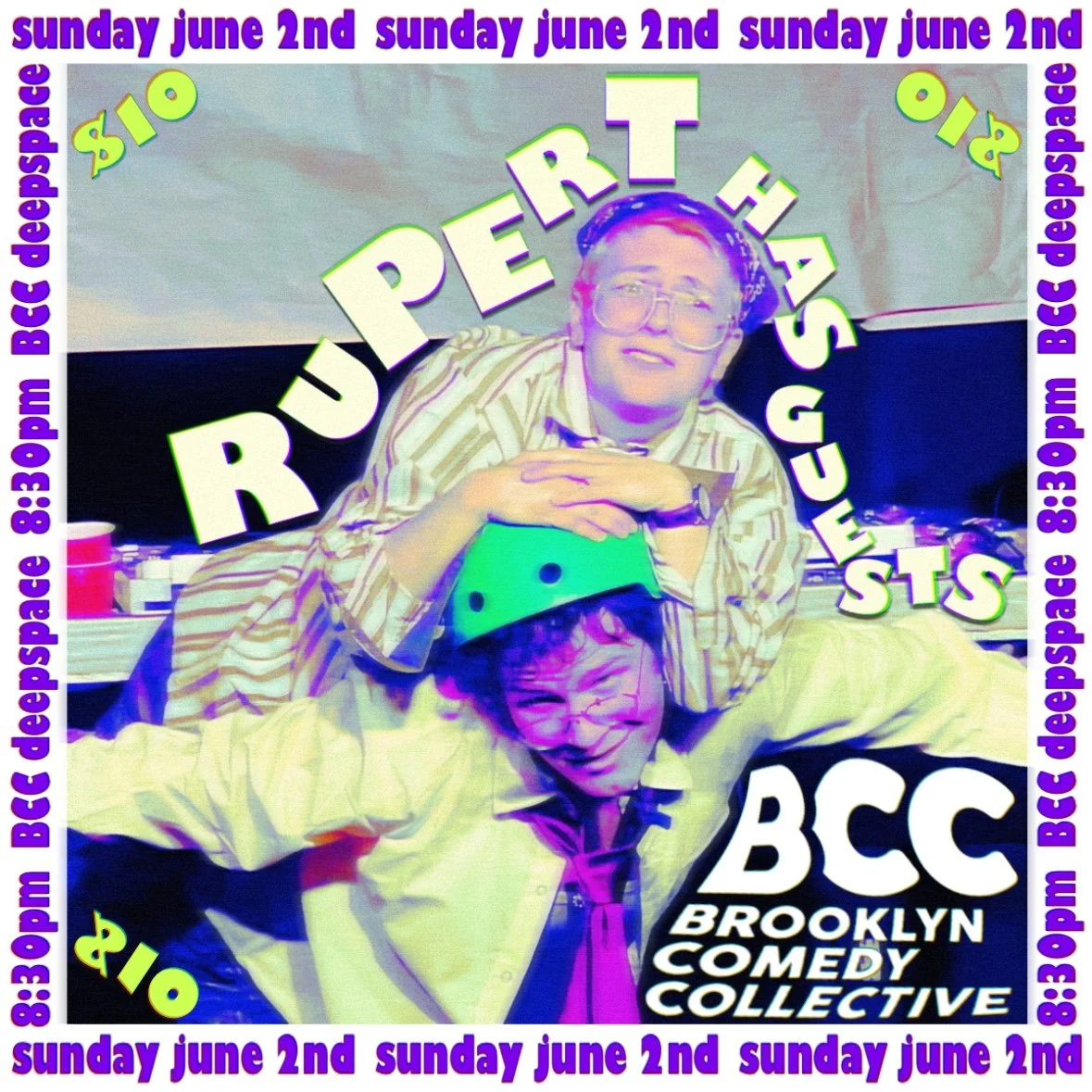 Rupert Has Guests is a variety show hosted by Pearl Emerson and Mitchell Ashe featuring clown, comedy, and music.