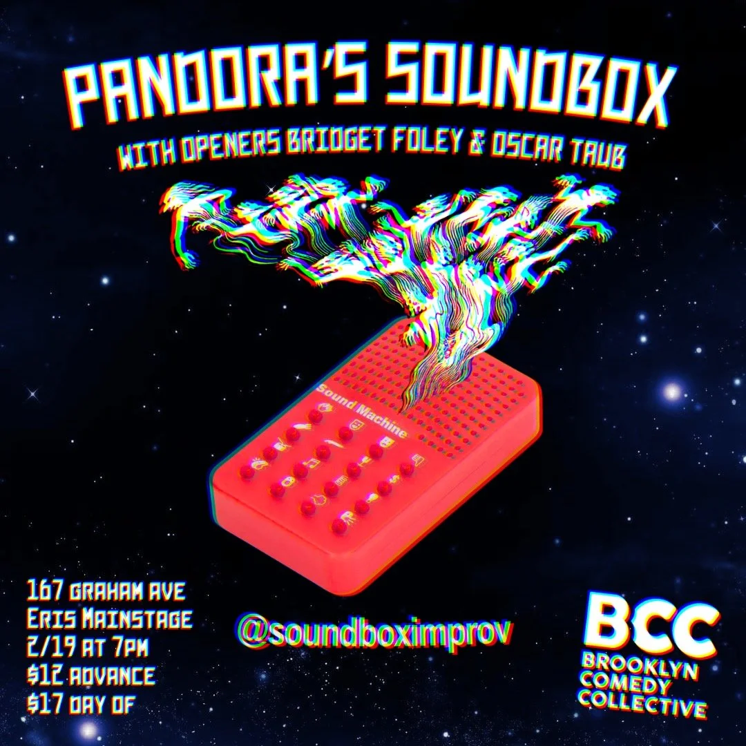 Soundbox Improv discovers a mysterious box waiting for them on the Brooklyn Comedy Collective MainStage. When they open it, horrors and mysteries beyond their wildest imagination are released into the ether.
