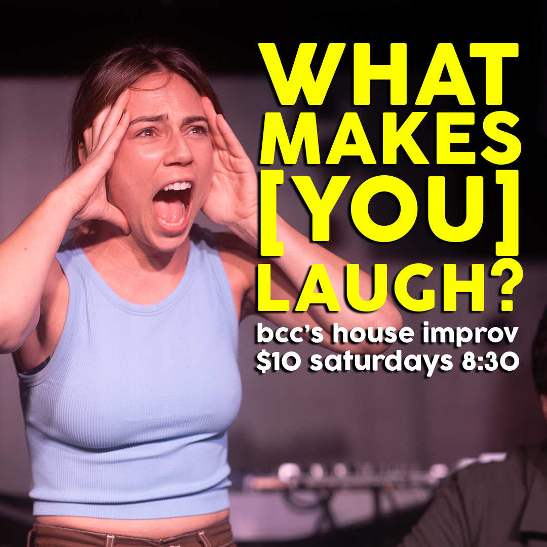 Welcome to the BCC's longest-running haus improv show - where everything is totally made up on the spot, for one night only. Each week a cast member gets to play team captain and decide what special rules for that show would make them laugh. Sit back, relax, and watch the chaos unfold.